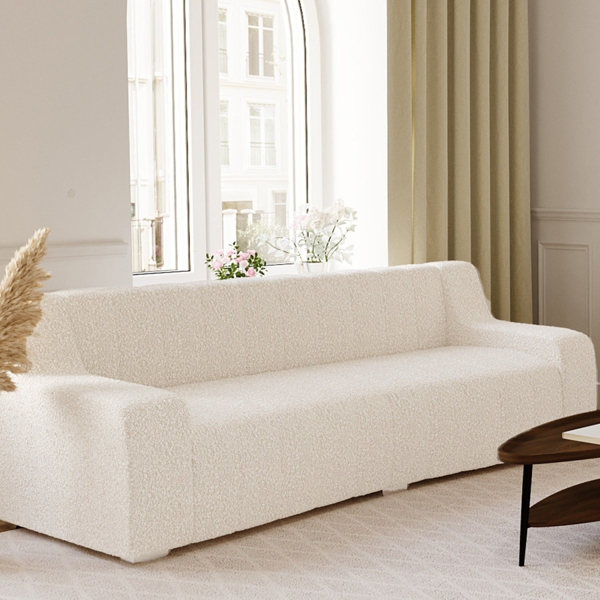 Un canapé compte vraiment beaucoup dans un salon. Visuellement, mais aussi pour le confort. Avec ce canapé blanc en tissu bouclette, vous faites mouche sur tous les plans : vous créez un véritable espace de détente qui peut accueillir agréablement vos proches, inviter aux longues siestes. Vous instaurez un style éclatant, élégant, accroche-regard .
