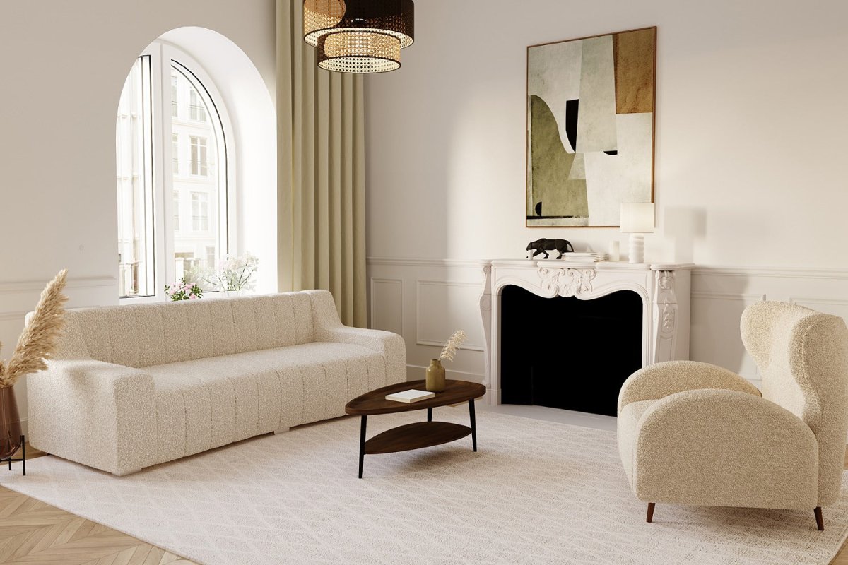 Chez vous | Garance et le luxe des finitions d'un canapé en bouclette blanche