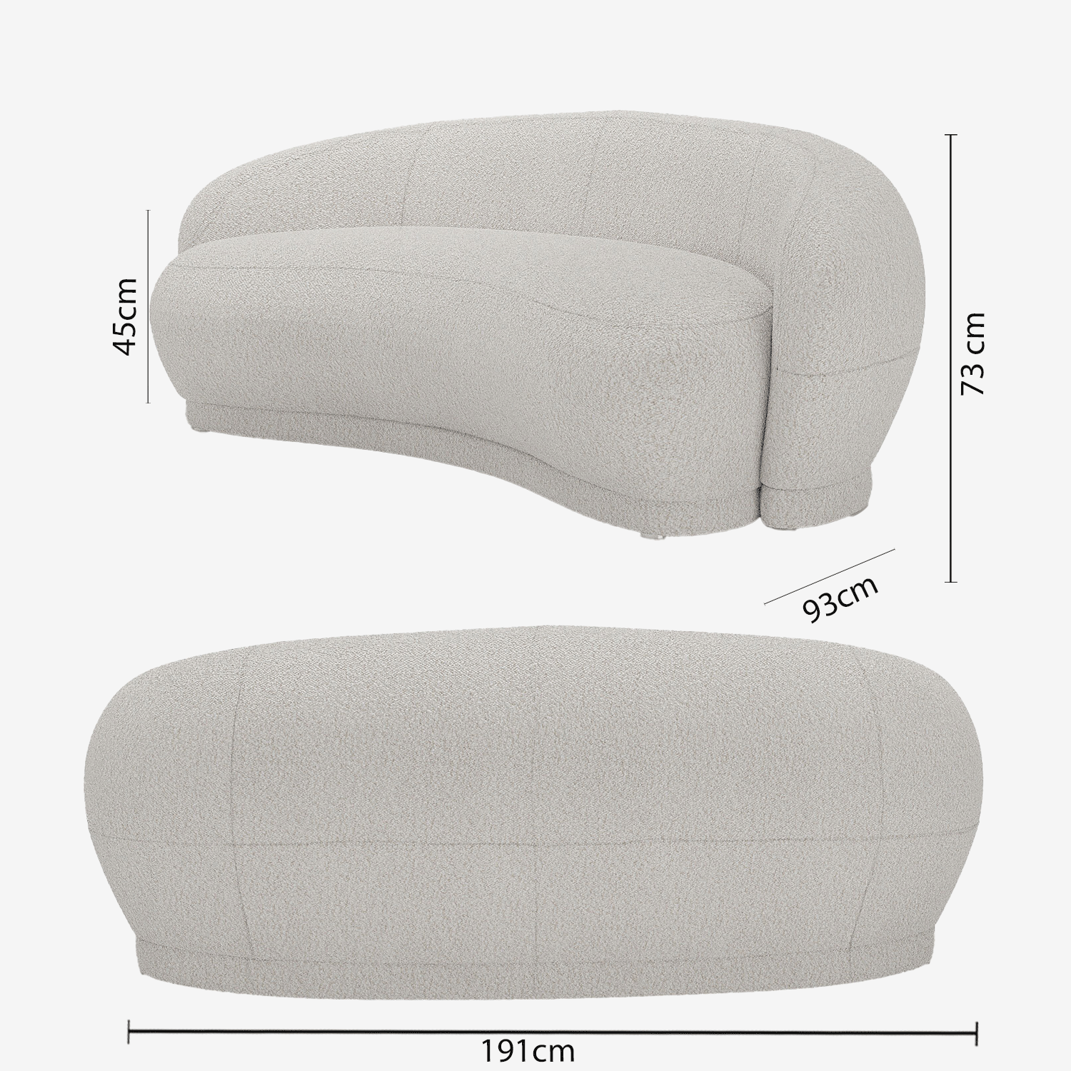 Bianca est un canapé bouclette qui dit deux choses à votre proposition : vous êtes résolument moderne avec un brin de fascination pour le futurisme, mais vous aimez vous reconnecter au plus essentiel de la nature .