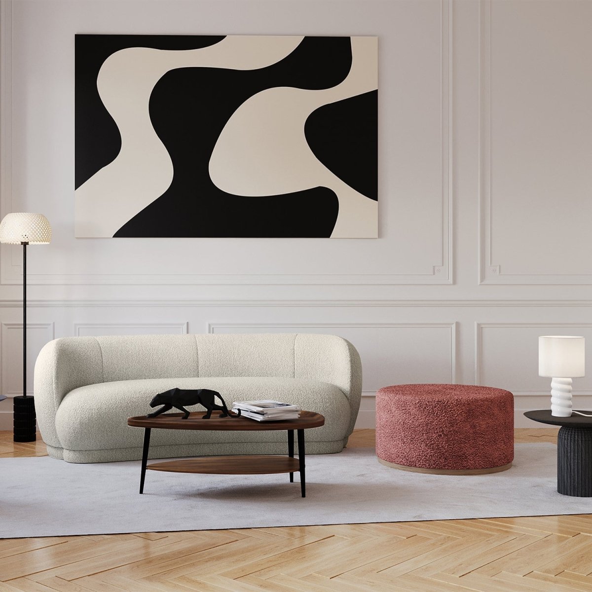 Si vous voulez frapper les esprits avec un salon qui est pile dans la tendance, alors, ce canapé incurvé effet bouclette est le bon. Entre sa silhouette arrondie qui accroche le regard et son adorable laine bouclée crème, douce et élégante, il se distingue haut la main.