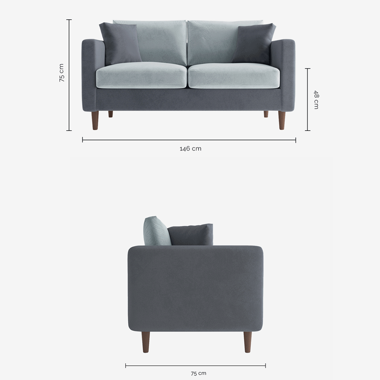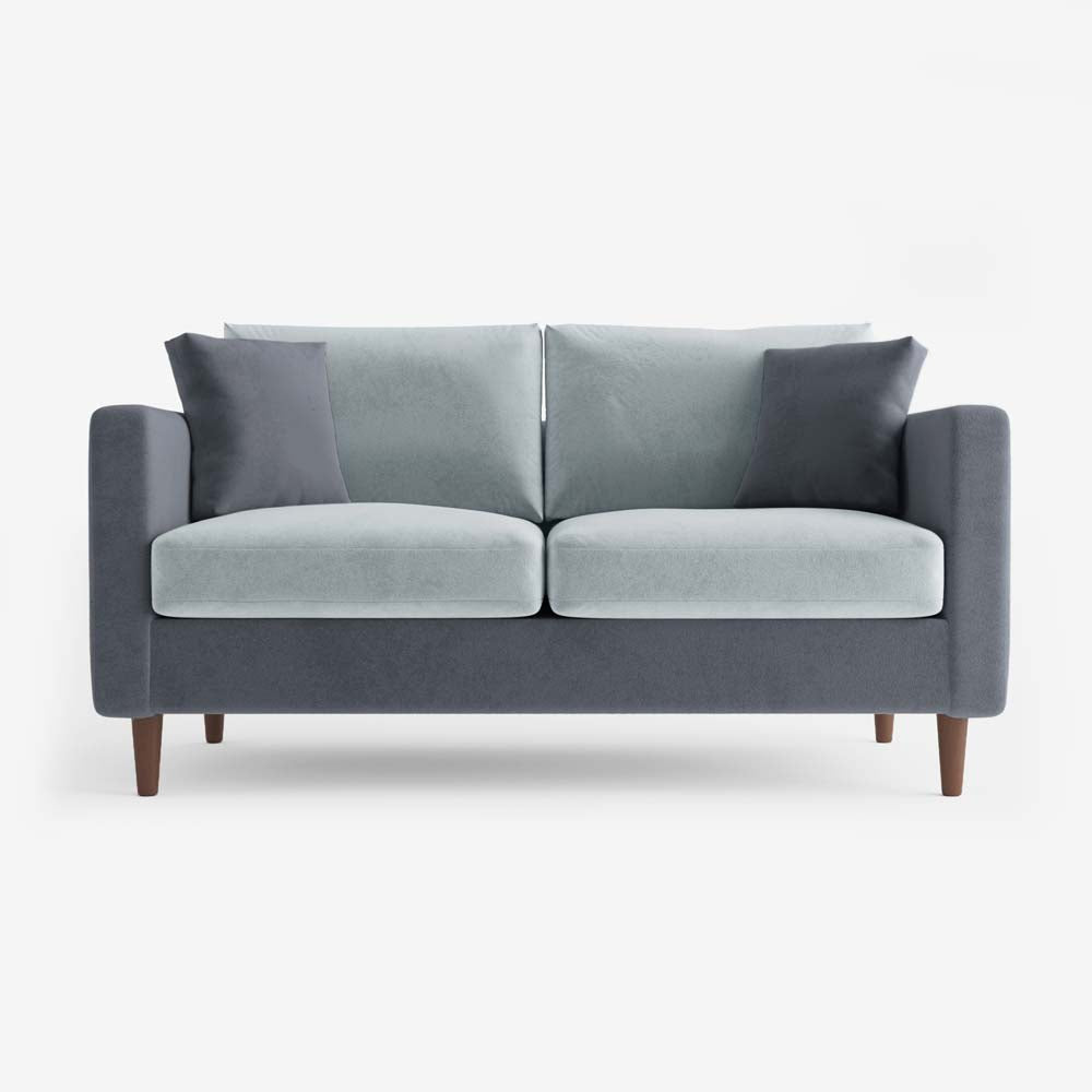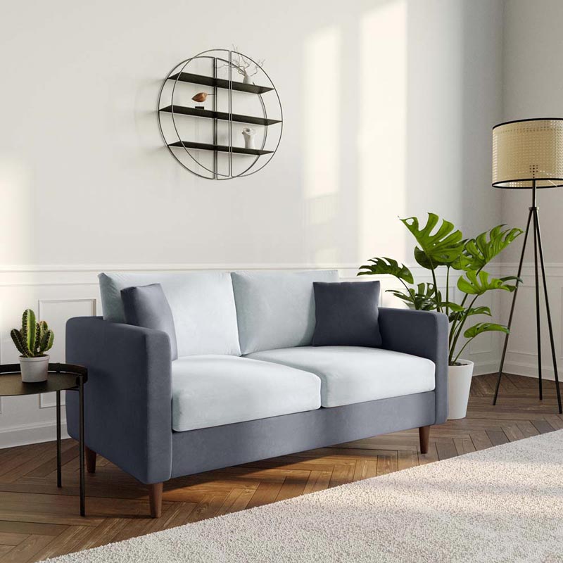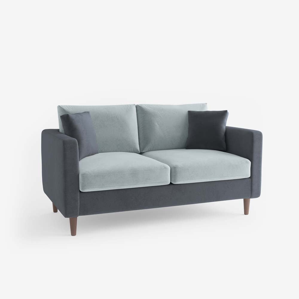 Canapé bicolore 2 places en velours Teflon™ - pieds en bois d'eucalyptus