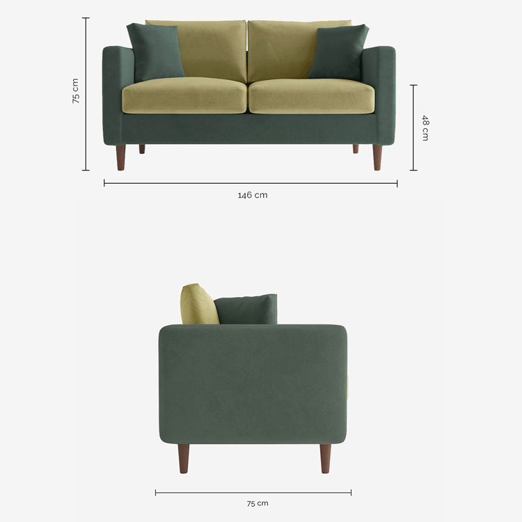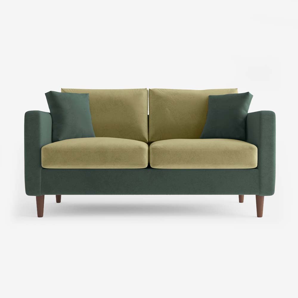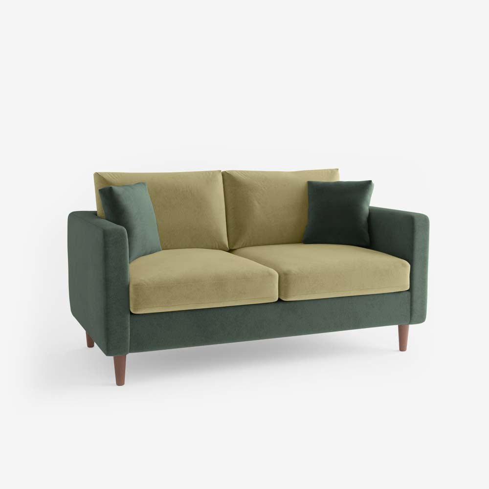 Canapé bicolore 2 places en velours vert