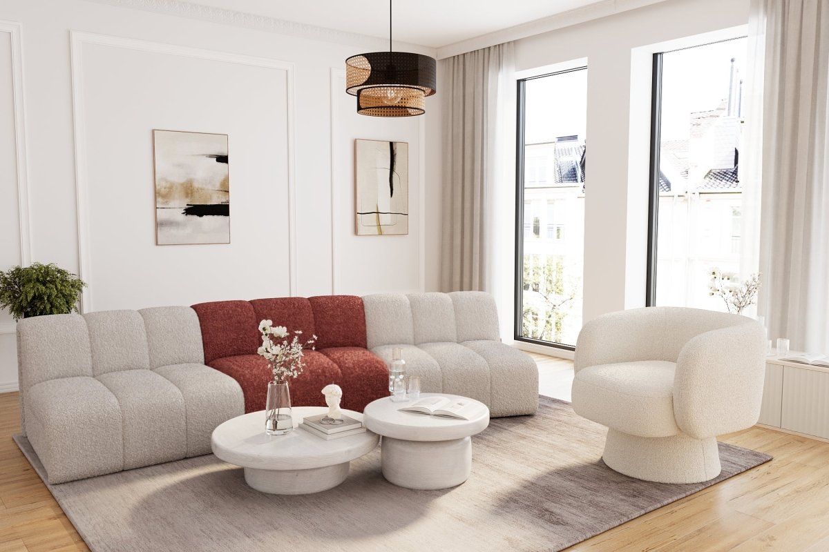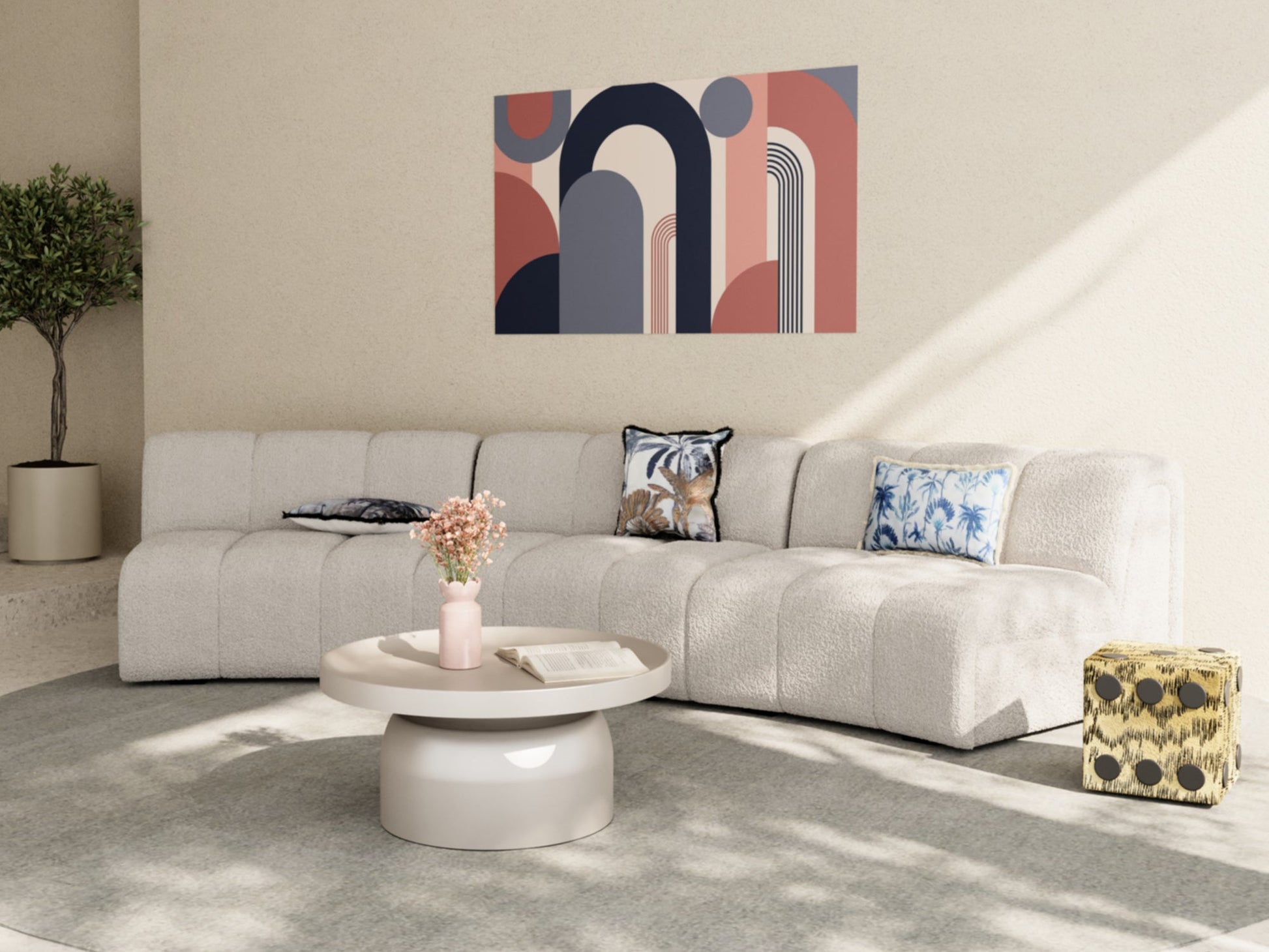 Voici la version crème du canapé modulable Hélène en tissu bouclette. La chauffeuse 1 place se dispose en tant que fauteuil à part entière ou bien s'intègre comme l'un des éléments du canapé. La combiner vous permet d'imaginer le canapé modulable de vos rêves ! Ce presque DIY astucieux et créatif affiche en prime un look tendance.