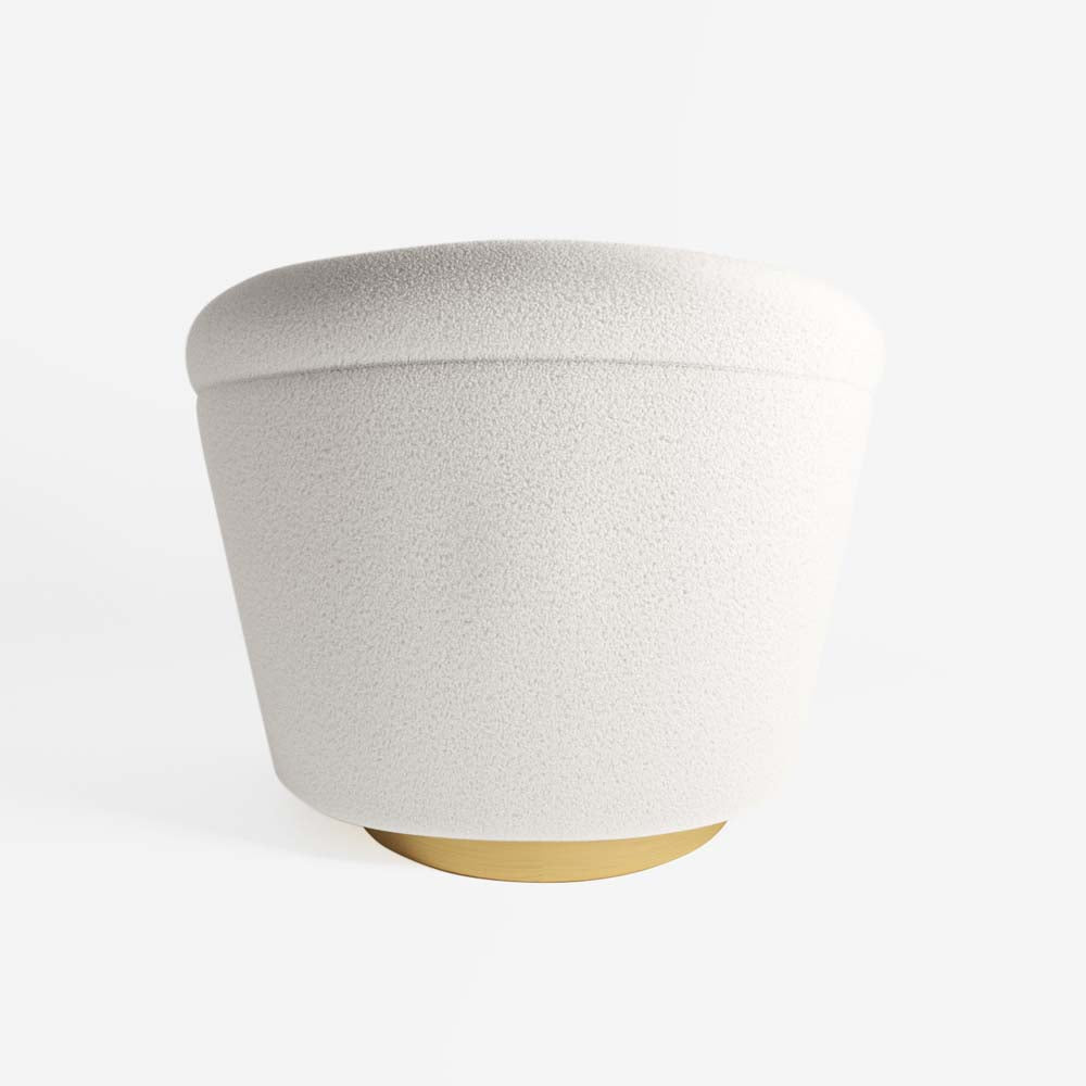Fauteuil design Bella, aspect laine bouclée blanche et laiton doré