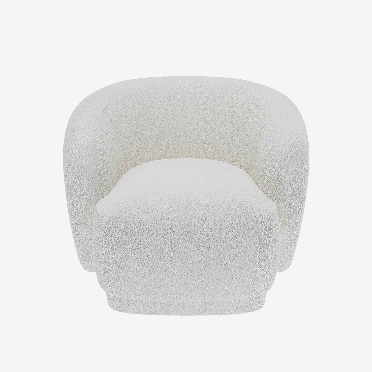 Vous l'aurez remarqué, le profil de ce fauteuil en bouclette blanche évoque ce qu'il ya de plus plaisant dans le style lounge : se sentir au large, tête et dos bien calés, à la hauteur parfaite pour étendre ses jambes ou leur offrir un repos-pied. Pour rehausser un salon ou donner du cachet à un coin bureau, il est parfait.