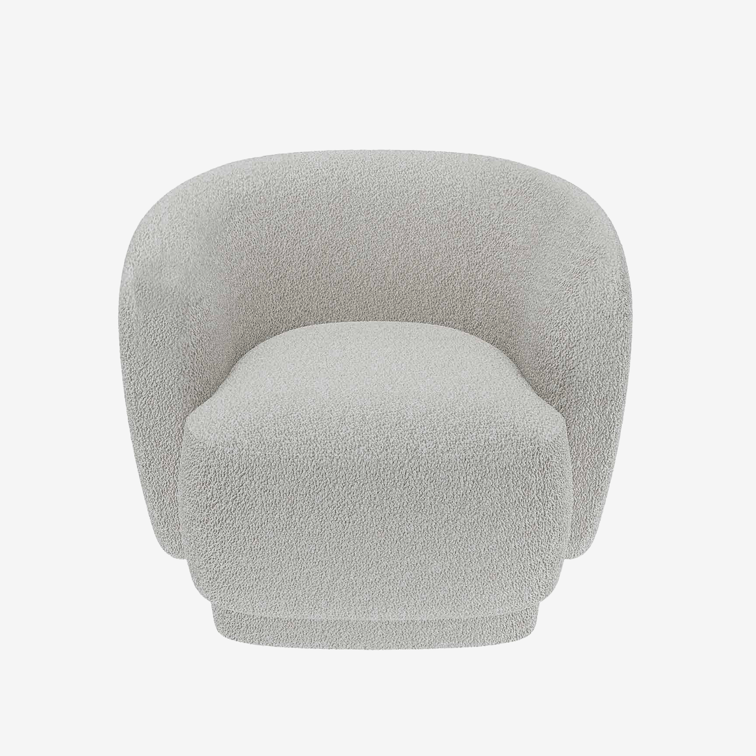 Généréusement rembourré, parfaitement enveloppant, de contact caressant, c'est ce qui vient à l'esprit dès qu'on voit ce fauteuil en bouclette crème. Son profil est à l'évidence très chic, mais il apporte aussi un état d'esprit tranquille, reposant . Avec un fauteuil design de ce genre, on se pose et on souffle .