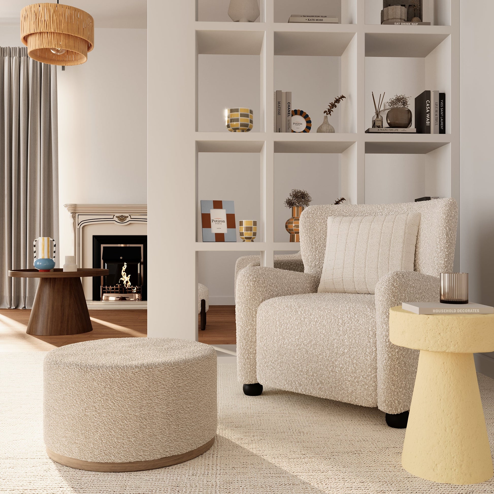 Près de la cheminée, à proximité d'un lit dans une chambre, au centre d'un tapis au salon et accompagné d'un éclairage chaleureux et d'une table basse, ce fauteuil à bouclette vintage se met en scène de façon naturelle et authentique. Le meilleur ami du quotidien, qui saura prendre soin de vous.