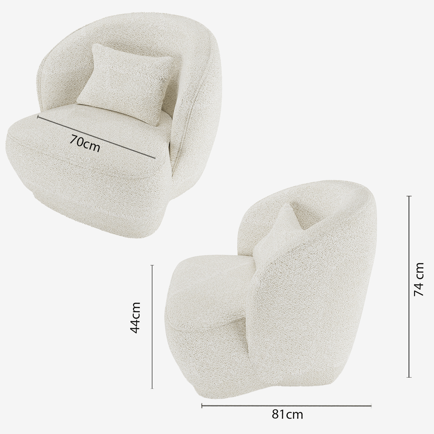 La conception tout en rondeurs de ce fauteuil design bouclé blanc lui permet de se fondre dans les décos de style organique , qui arrondissent les angles et recherchent des volumes vivants . Elle peut créer un contraste intéressant si vous l'associez à des meubles de salon dont la structure est élancée, aérienne.
