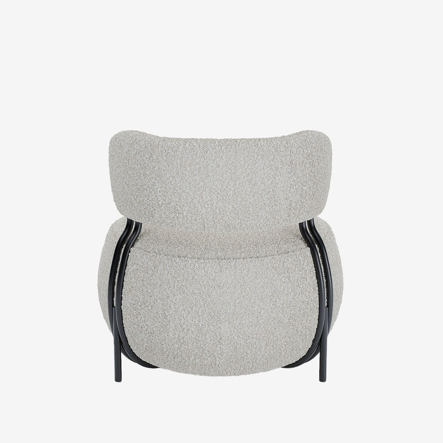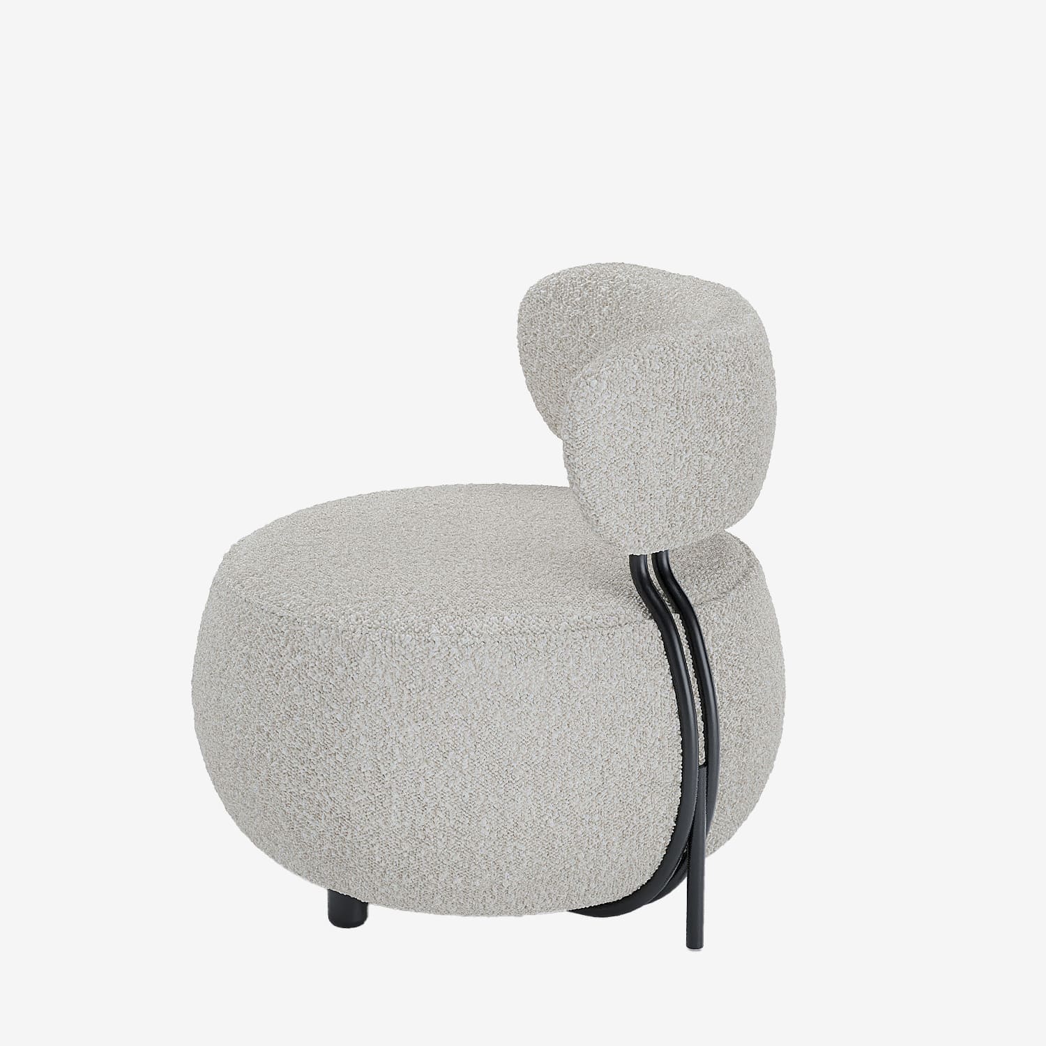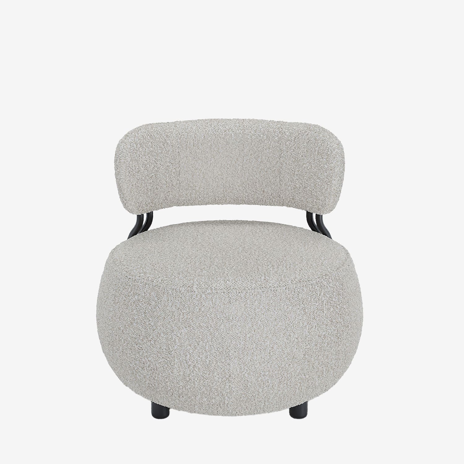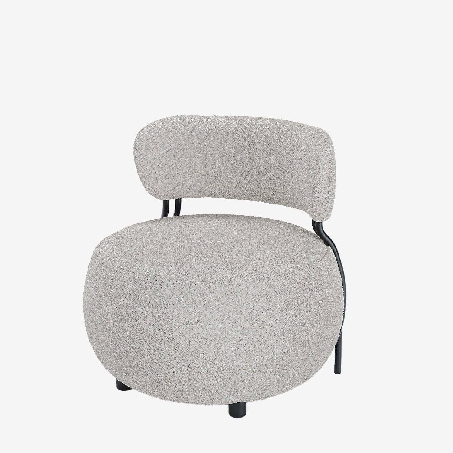 Fauteuil arrondi en tissu bouclé gris-crème Mia
