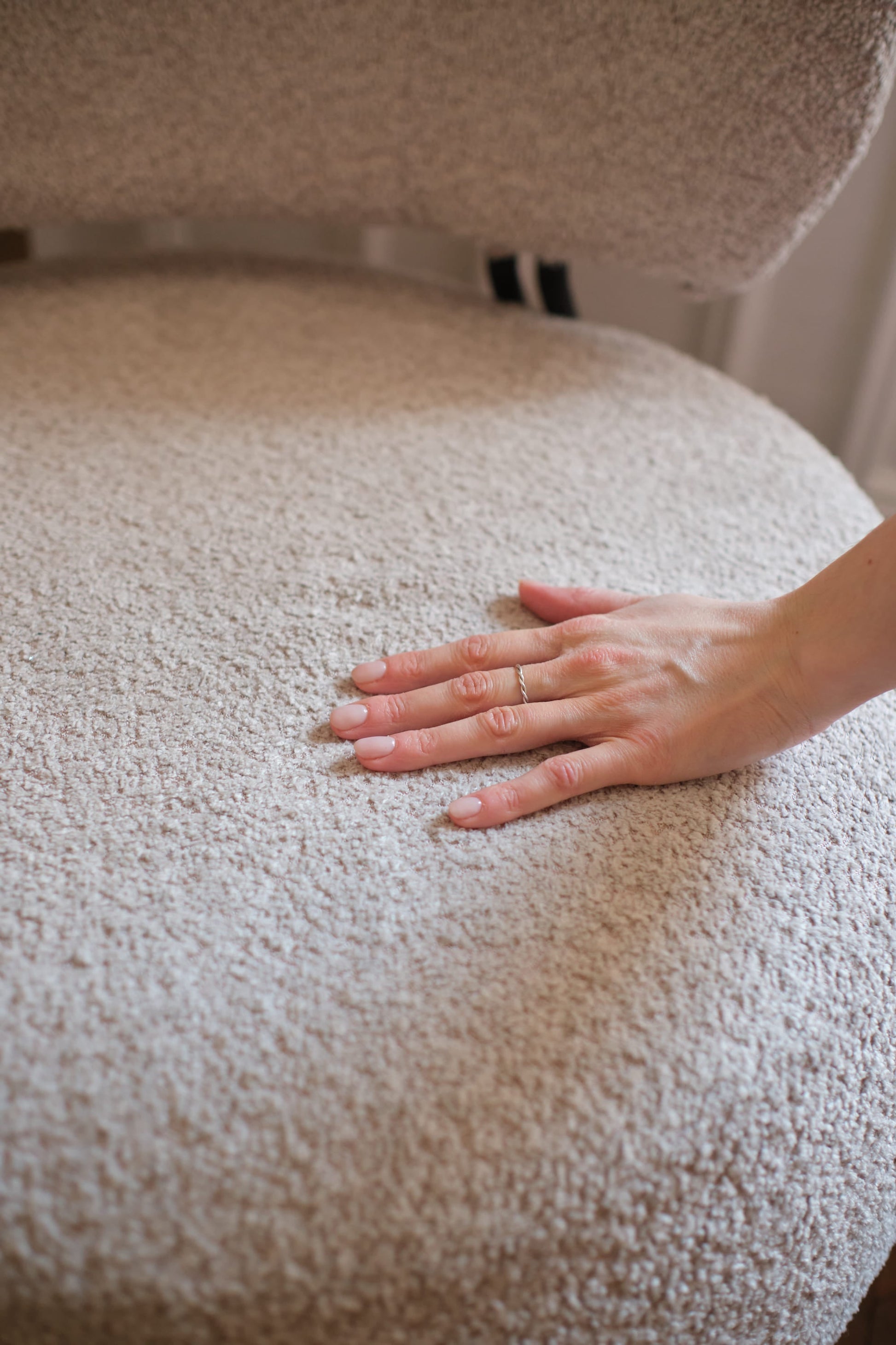 - Ce fauteuil en tissu bouclé beige est non déhoussable. Il se nettoie avec un tissu humide. Suivez nos conseils ici.