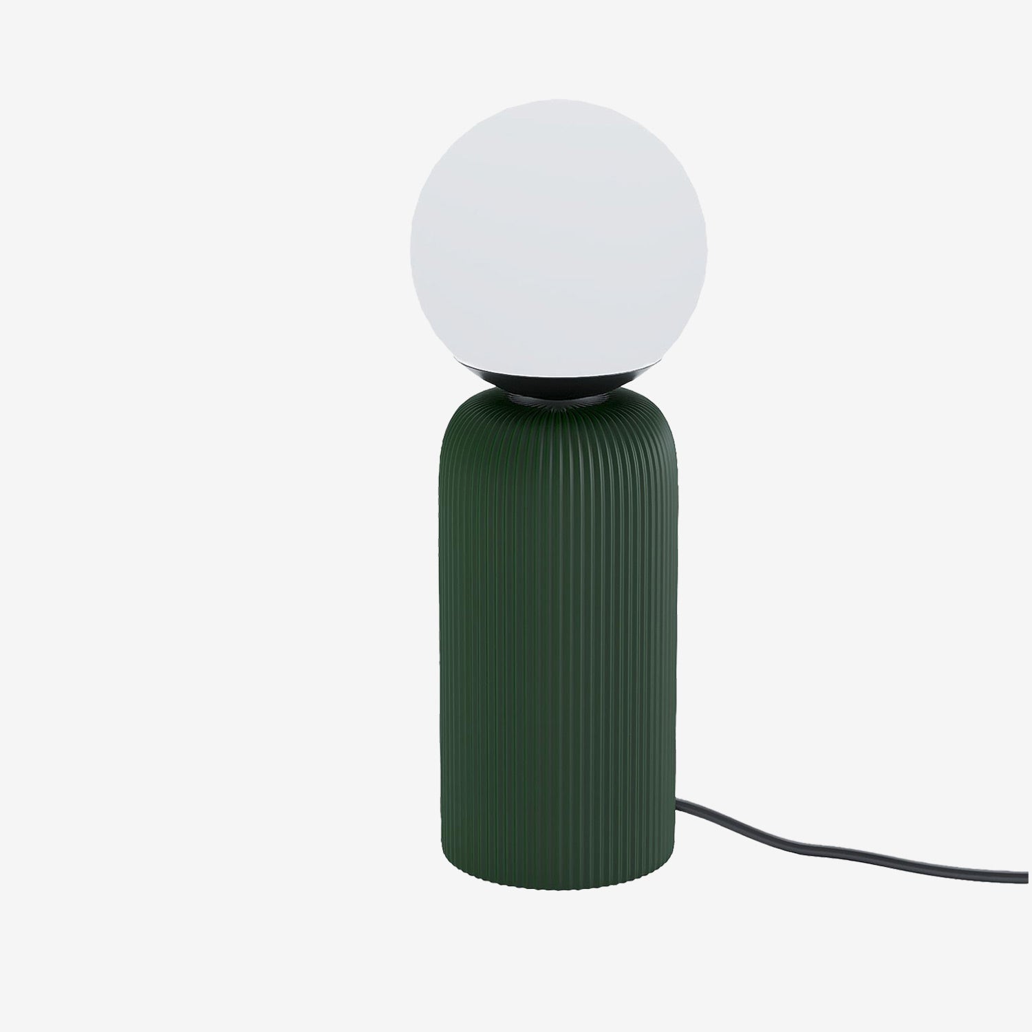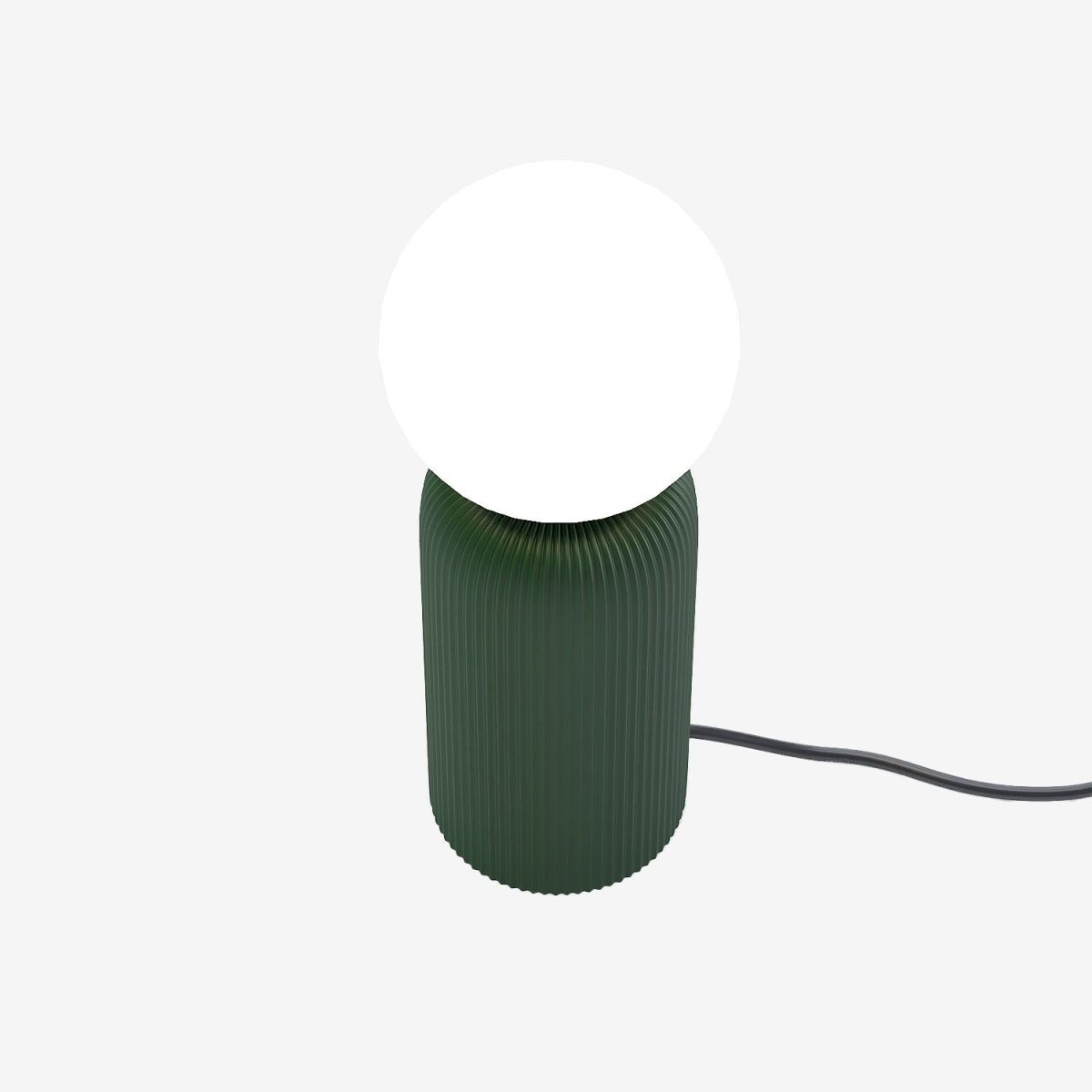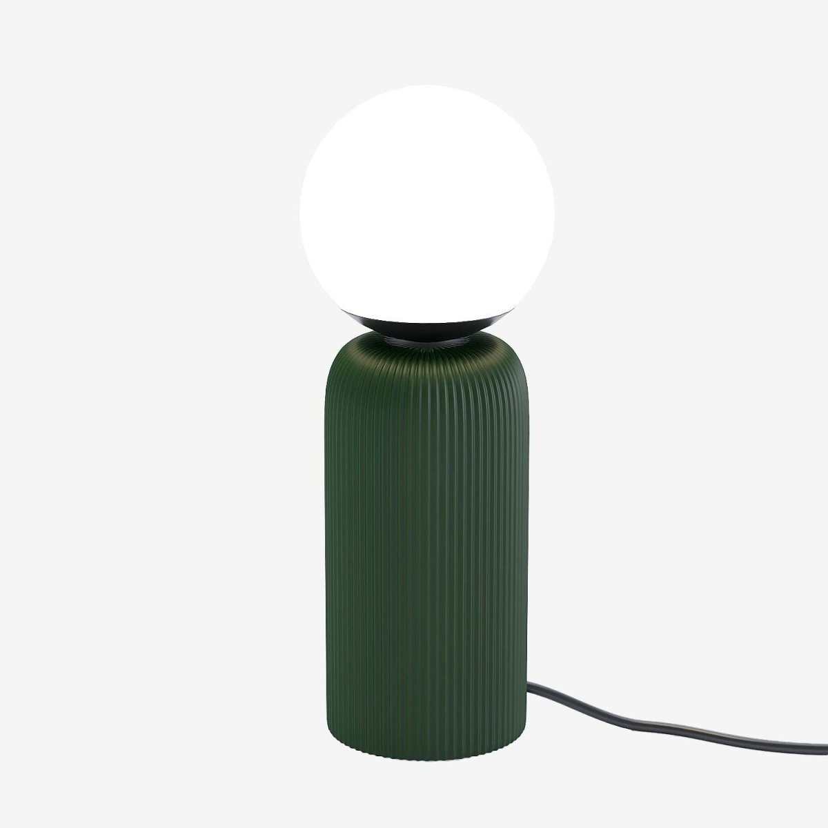 Avec son pied vertical kaki délicatement strié et sa boule de lumière, cette lampe en céramique design constitue en un seul coup une note de goût marquante et un utilitaire radicalement pratique à glisser sur une étagère.