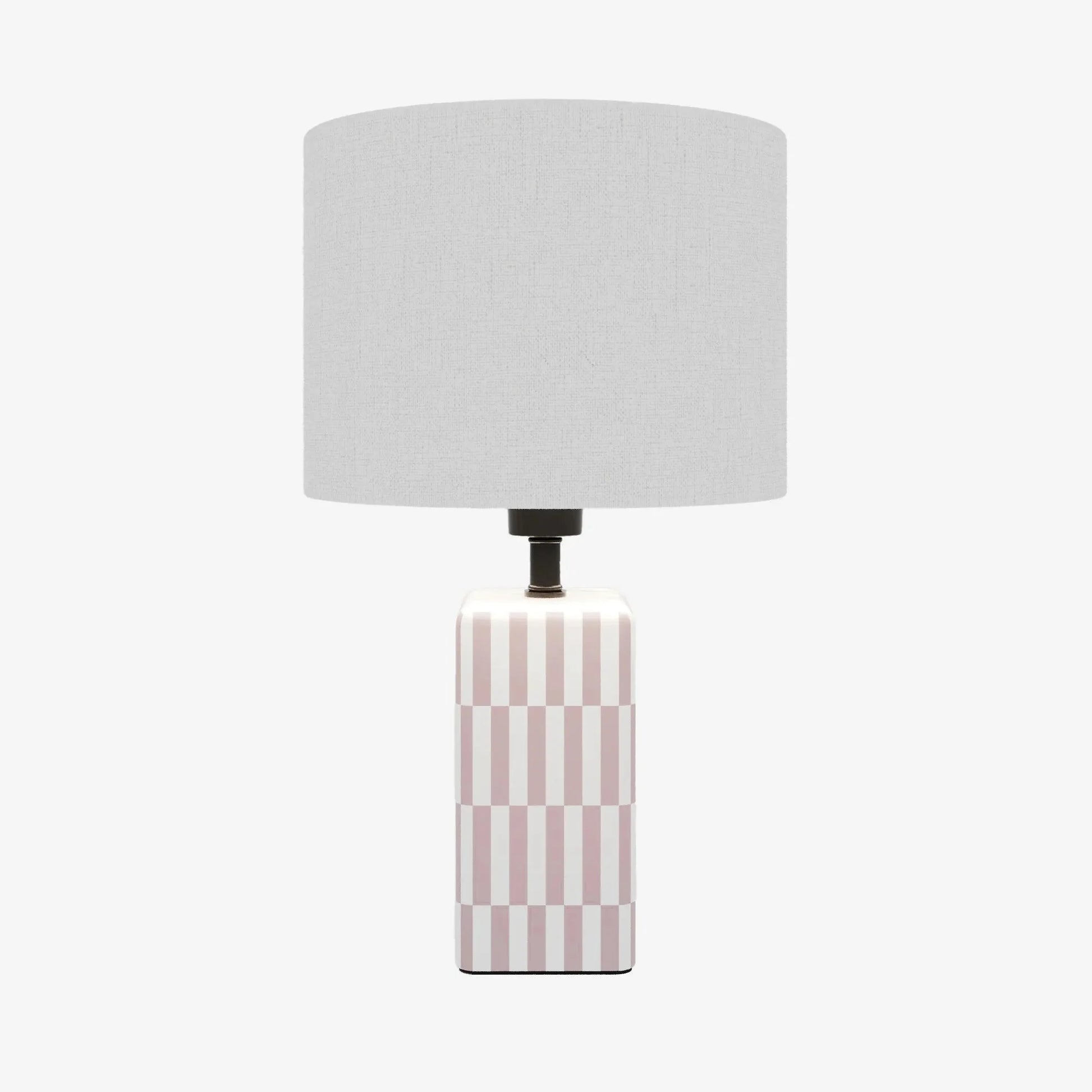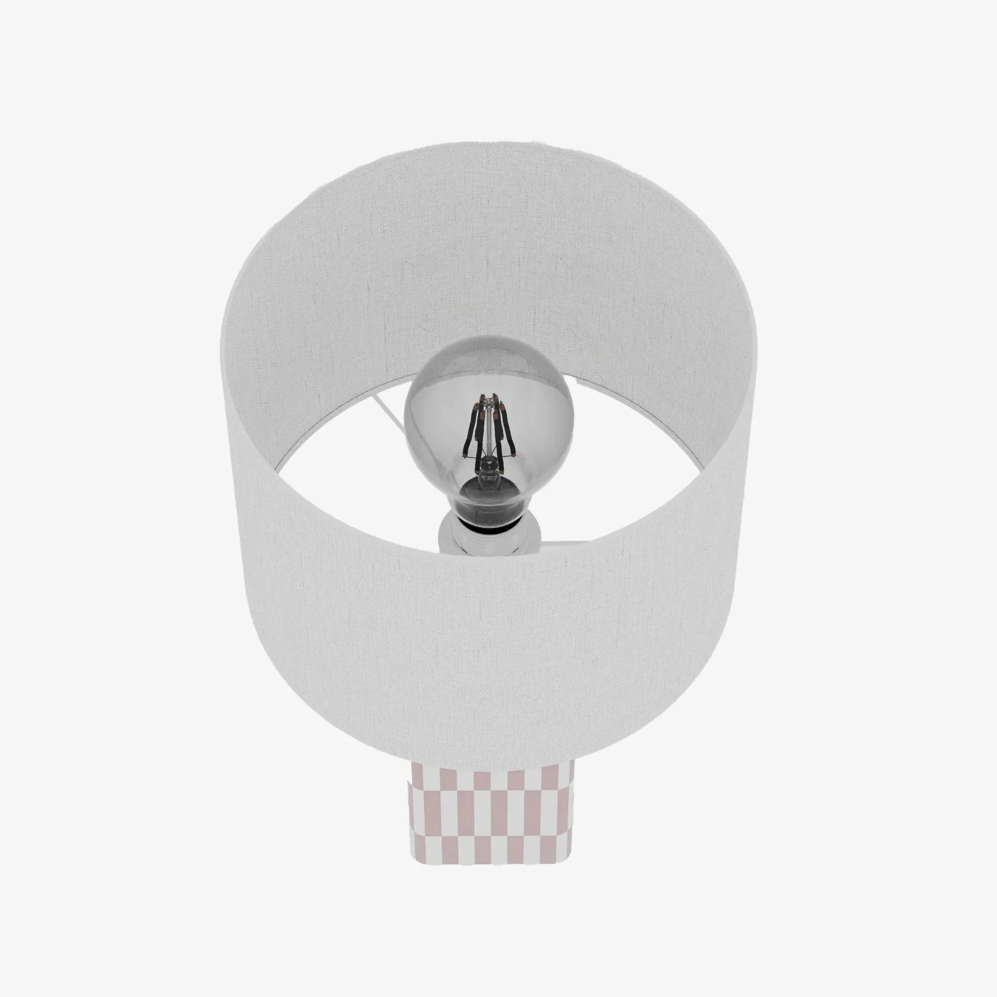- Alliance raffinée : base en céramique rose poudré et abat-jour en lin naturel