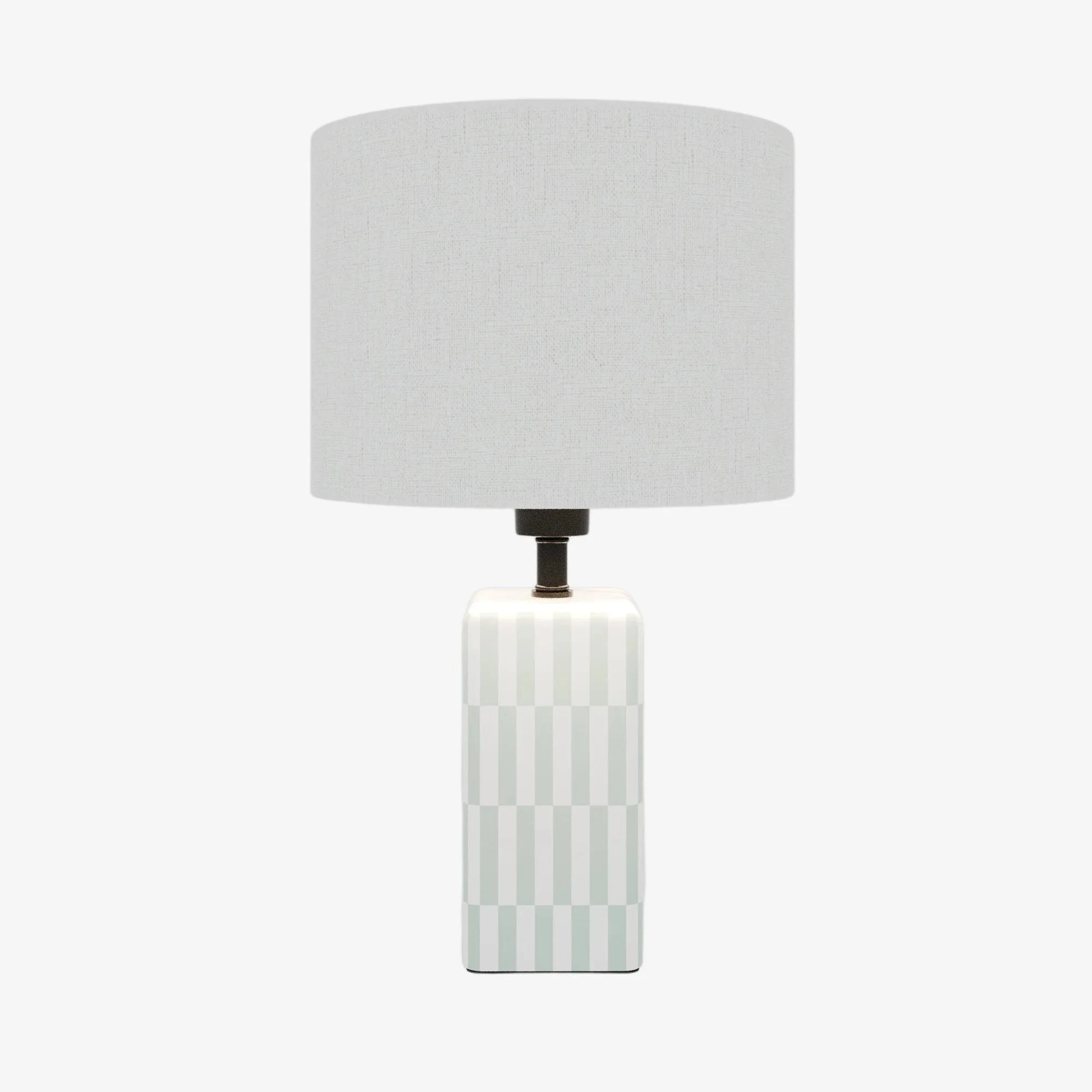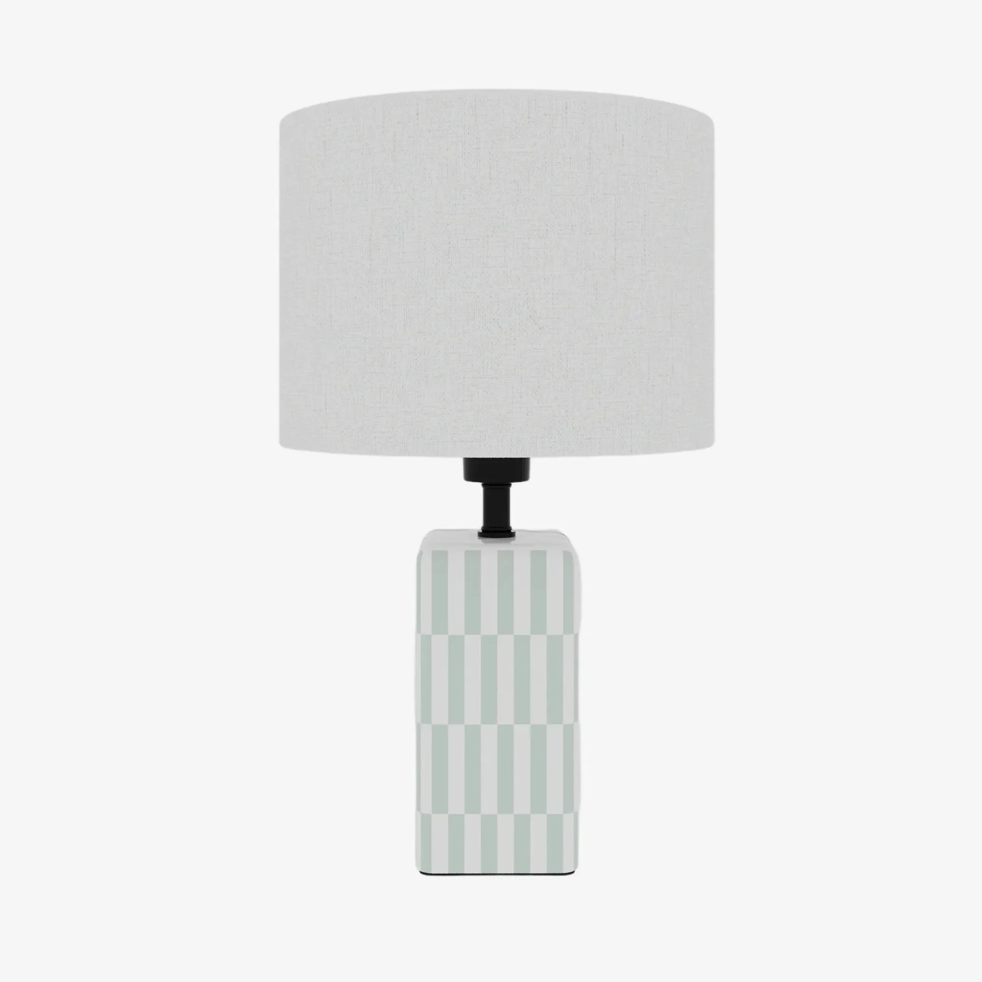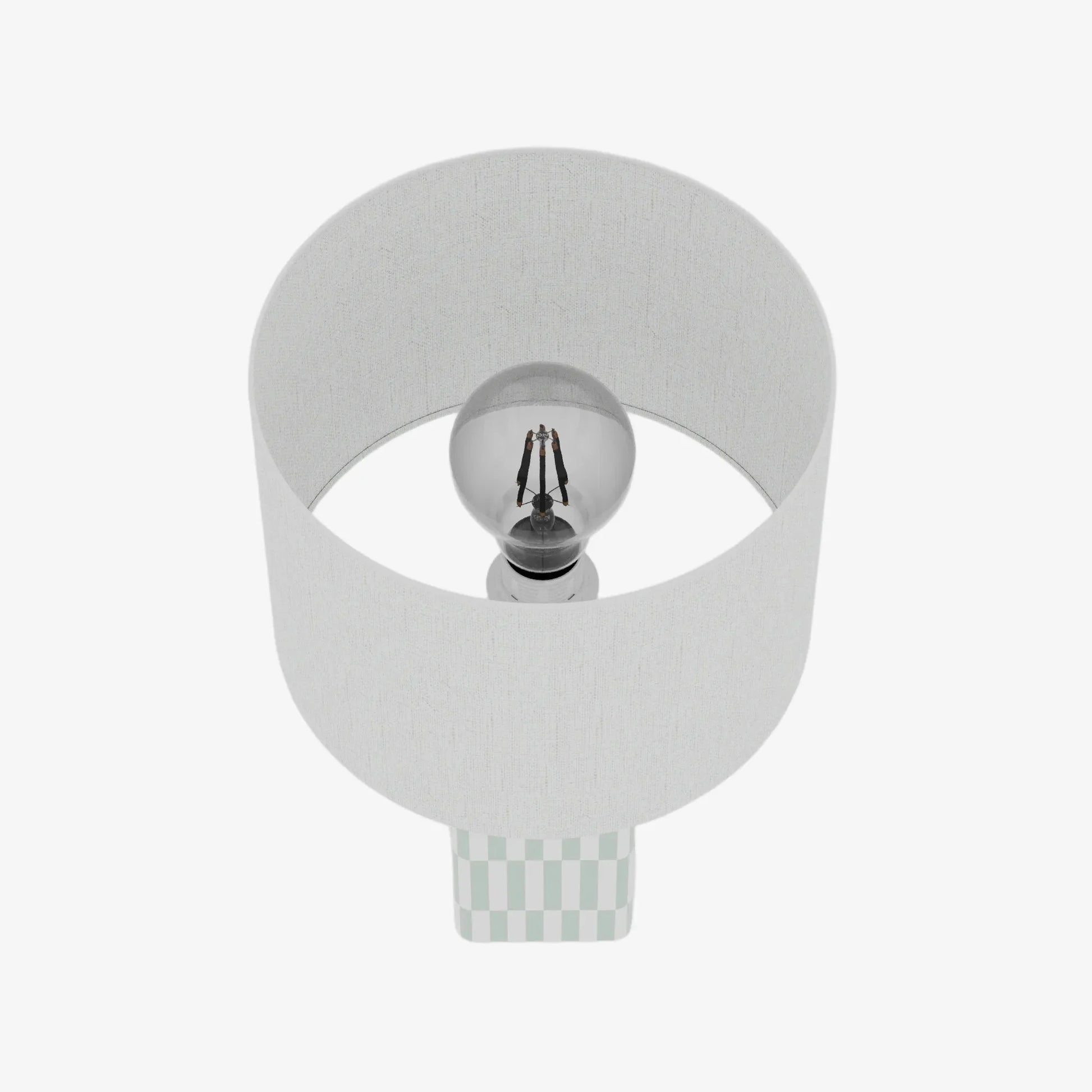 - Alliance élégante : base en céramique vert d'eau et abat-jour en lin naturel