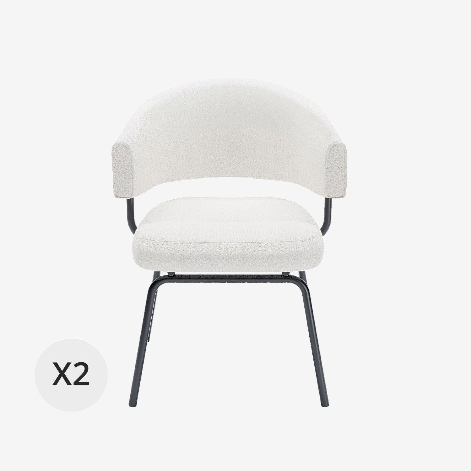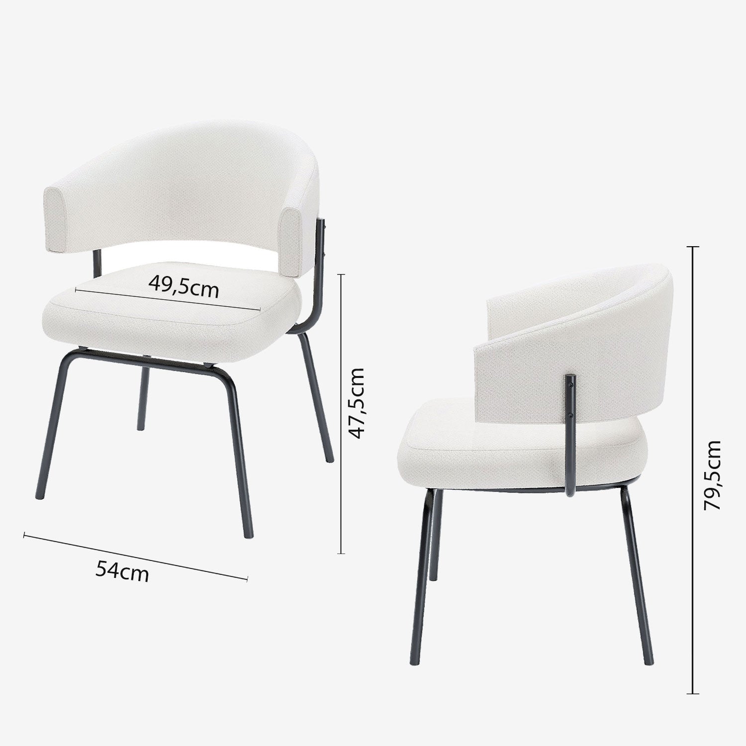Lot de 2 chaises design rembourrées avec accoudoir en tissu chenille blanc Silva