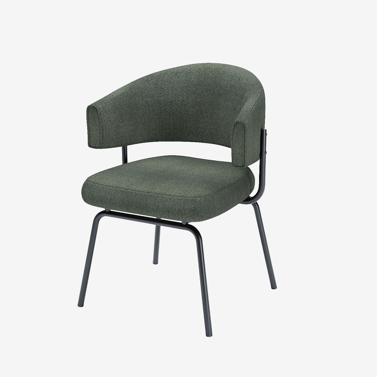 Silva est un fauteuil de table en tissu surprenant. Simplissimes en apparence, coussin et dos donnent l'impression de flotter au-dessus de la structure, avec un dossier et des accoudoirs qui se rejoignent pour ne faire qu'un. Si les fauteuils de table incurvés sont à la mode, celui-ci se distingue grâce à son tissu texturé vert intense et à une conception plus audacieuse, irrésistiblement enveloppante.