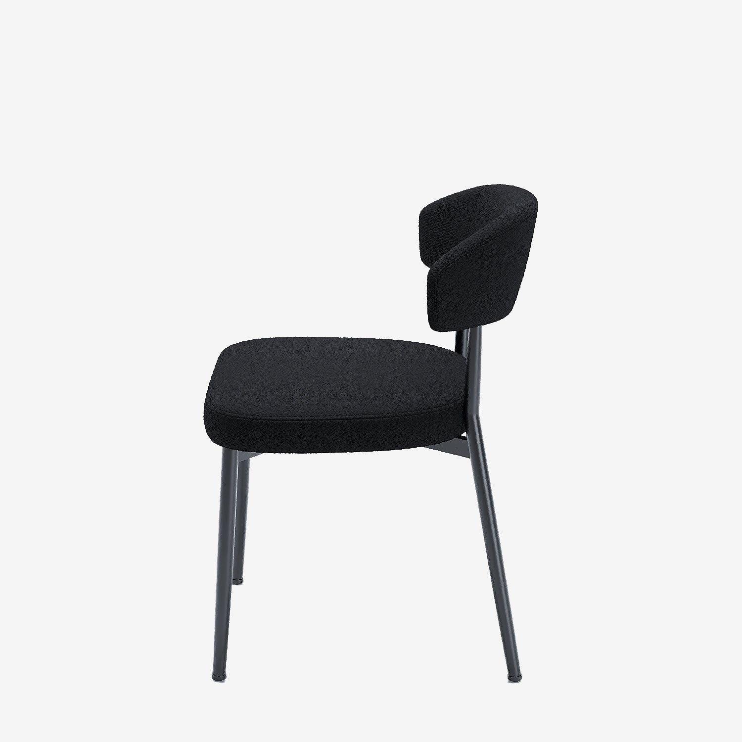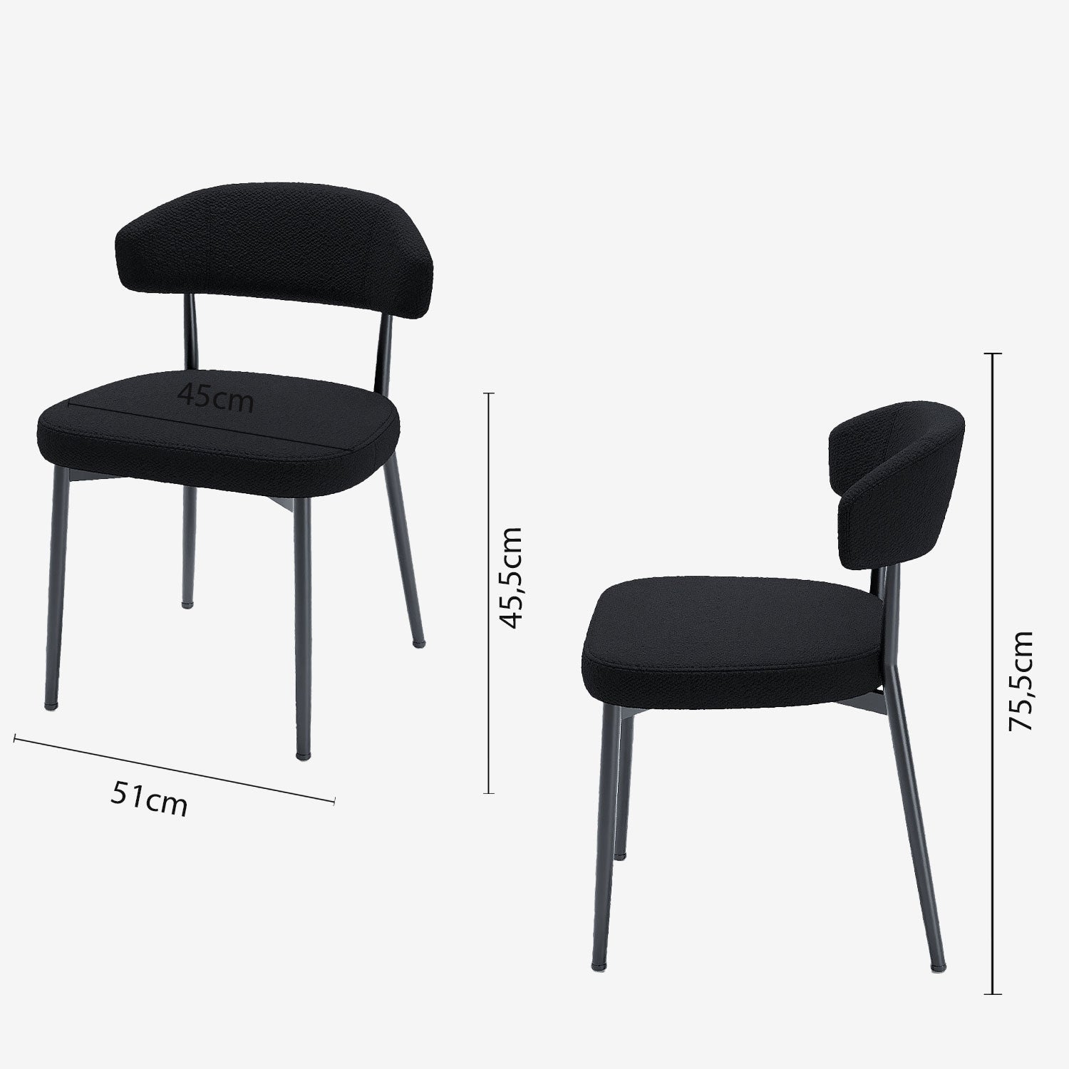 En détail | Le pouvoir d'influence des chaises de salle à manger en tissu bouclette gris anthracite et métal noir Mona