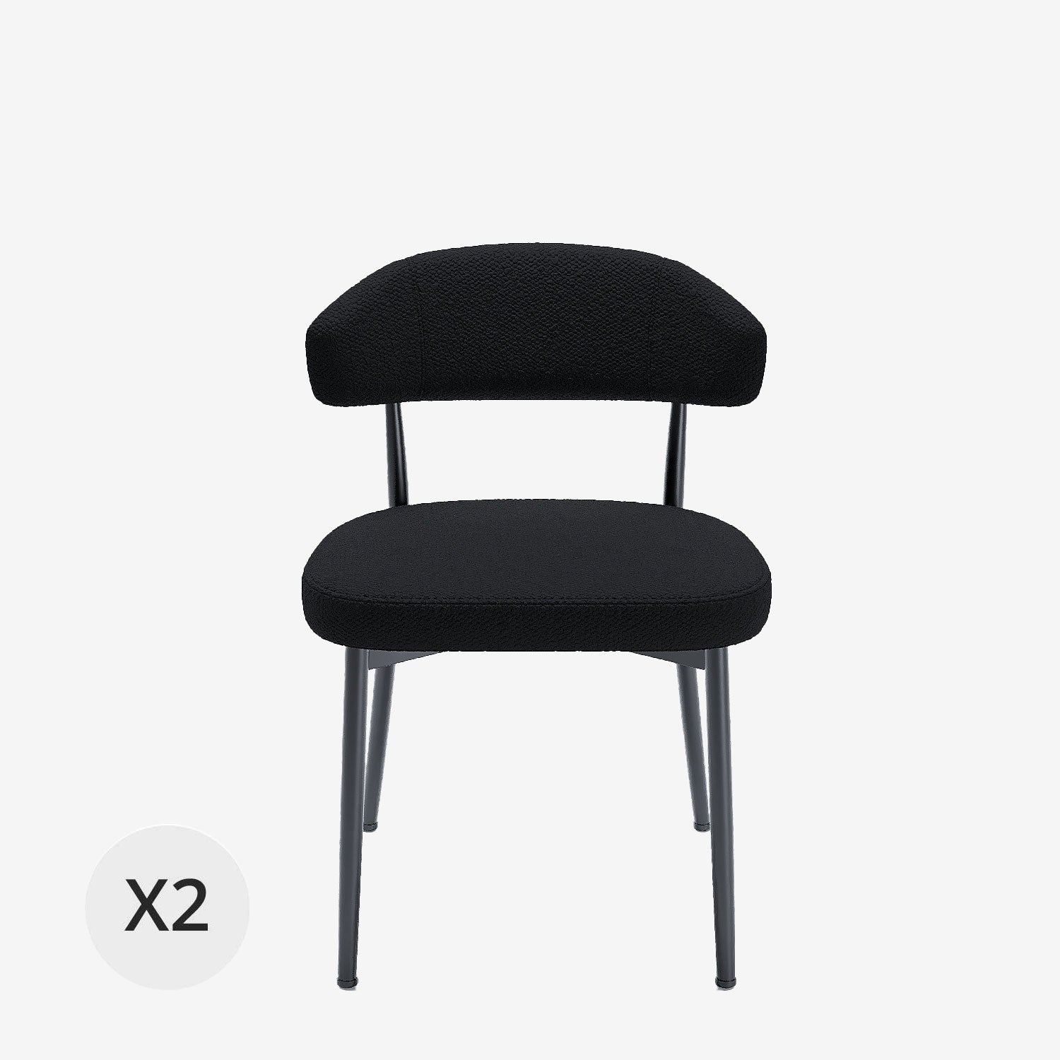 Lot de 2 chaises en bouclette grise & métal noir Mona