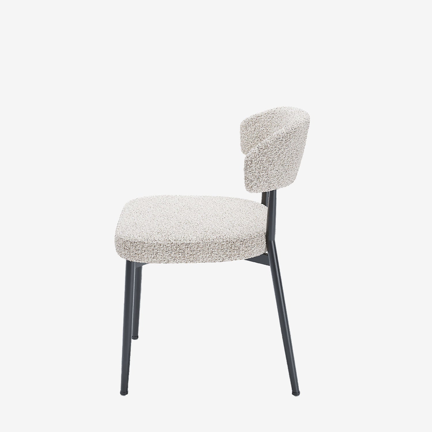 La sobriété de ces chaises de salle à manger en tissu bouclette et métal noir est un atout. Vous pourrez les placer dans tous les thèmes déco, sans risque de vous tromper. Leur revêtement blanc et gris, doux et texturé, convient très bien pour apporter une note d'intensité un brin sérieux, mais bel et bien chaleureux .