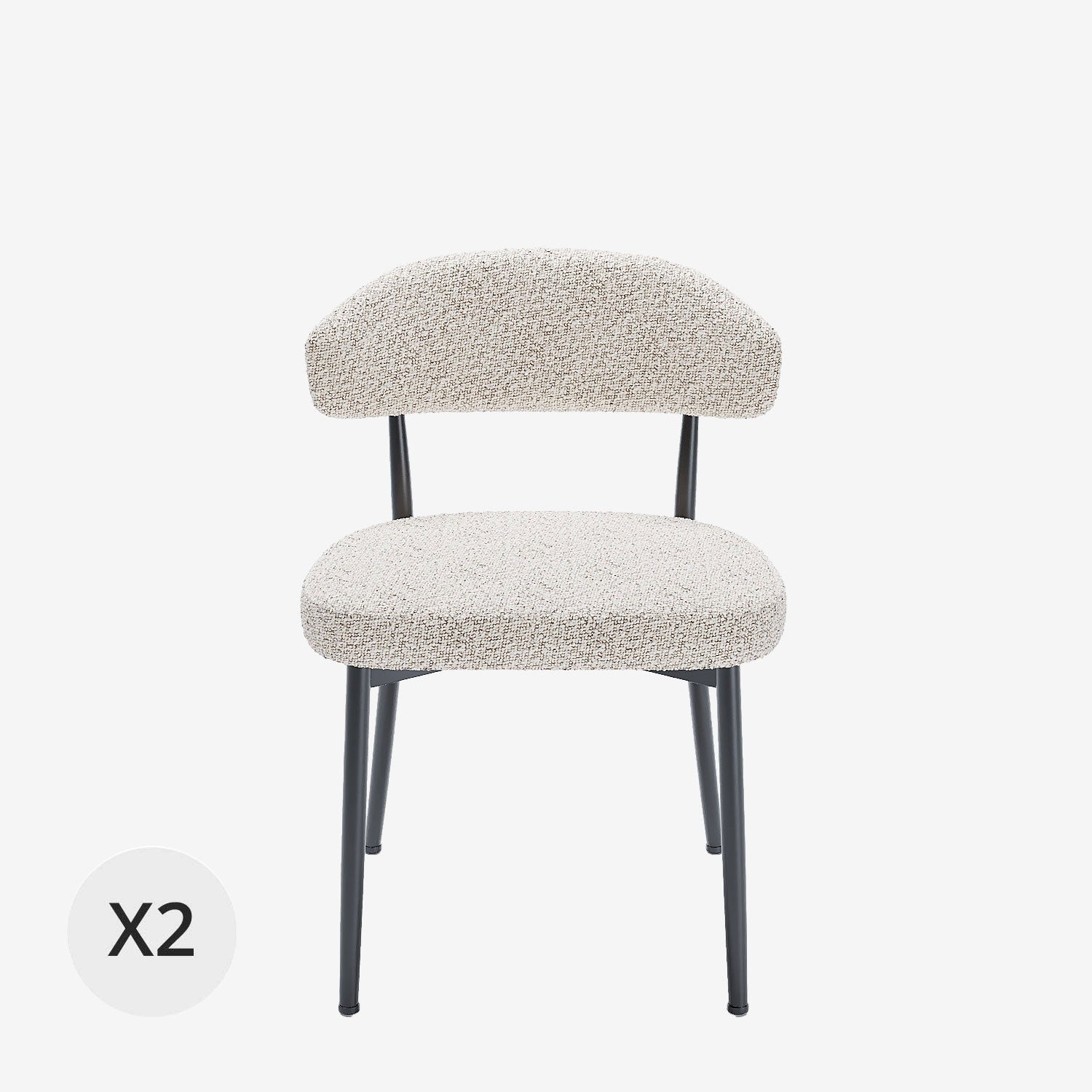 Lot de 2 chaises de salle à manger en tissu bouclette gris et blanc & métal noir Mona
