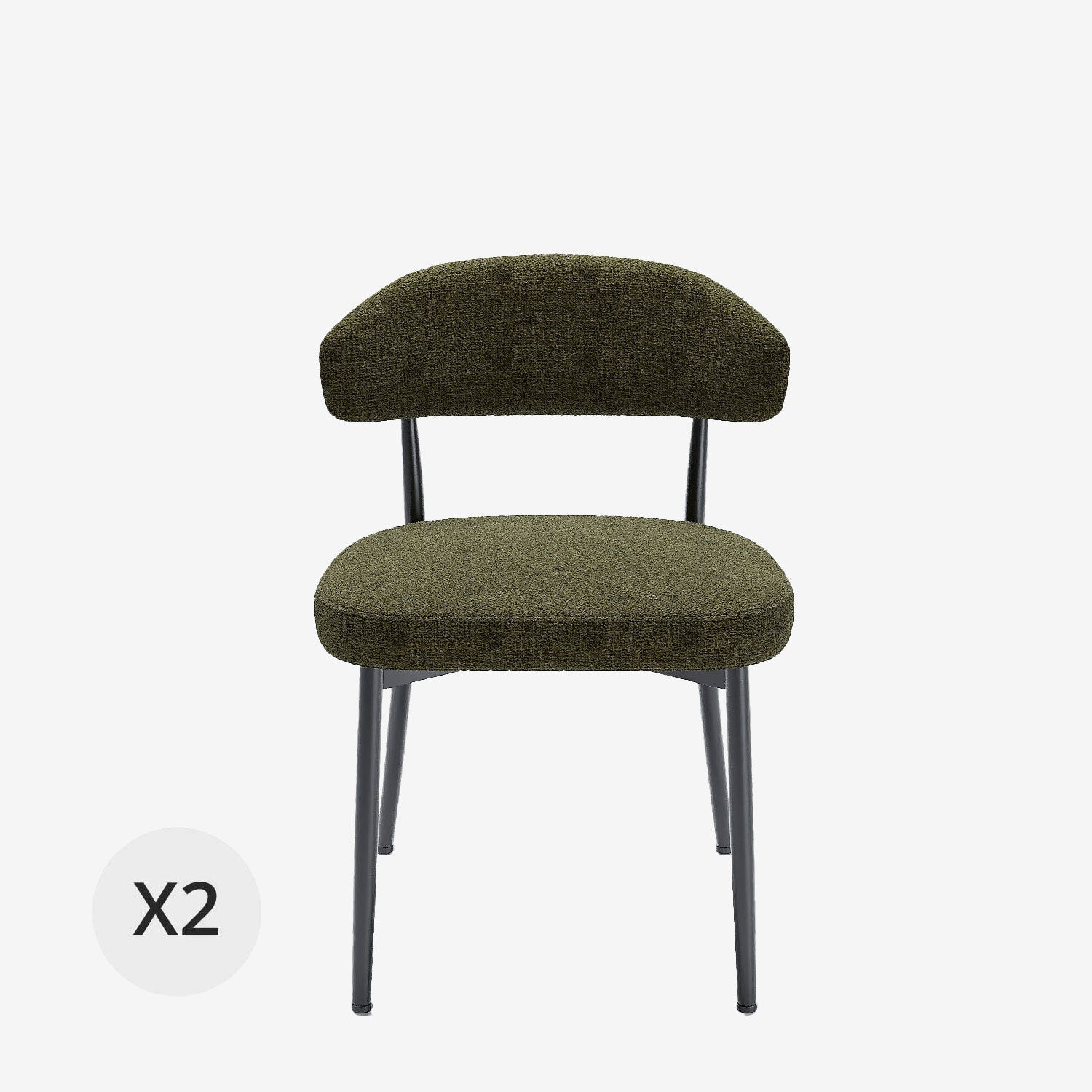 Lot de 2 chaises en velours vert foncé & métal noir Mona