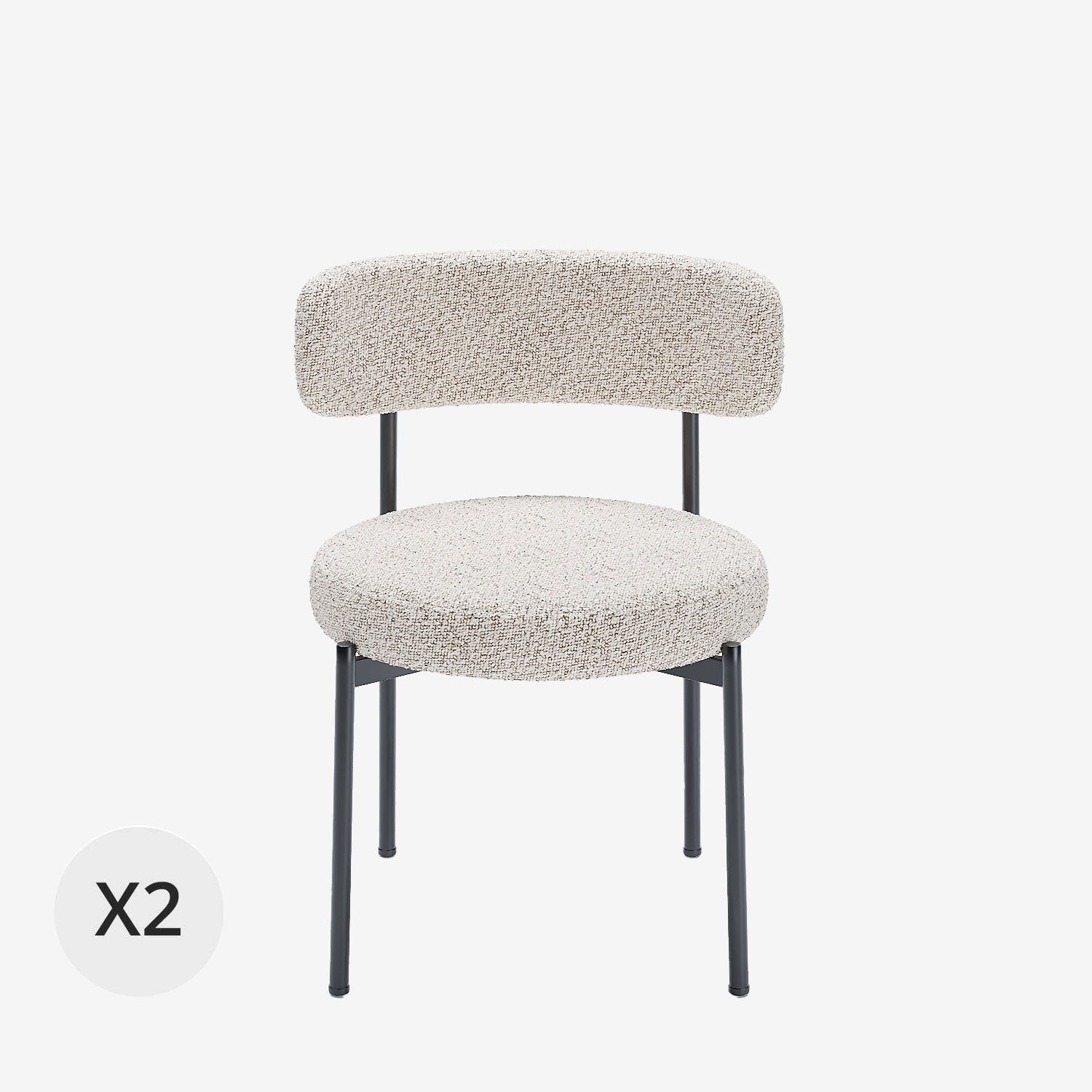 Lot de 2 chaises de cuisine rembourrées, bouclette chinoise & métal noir Scarlett