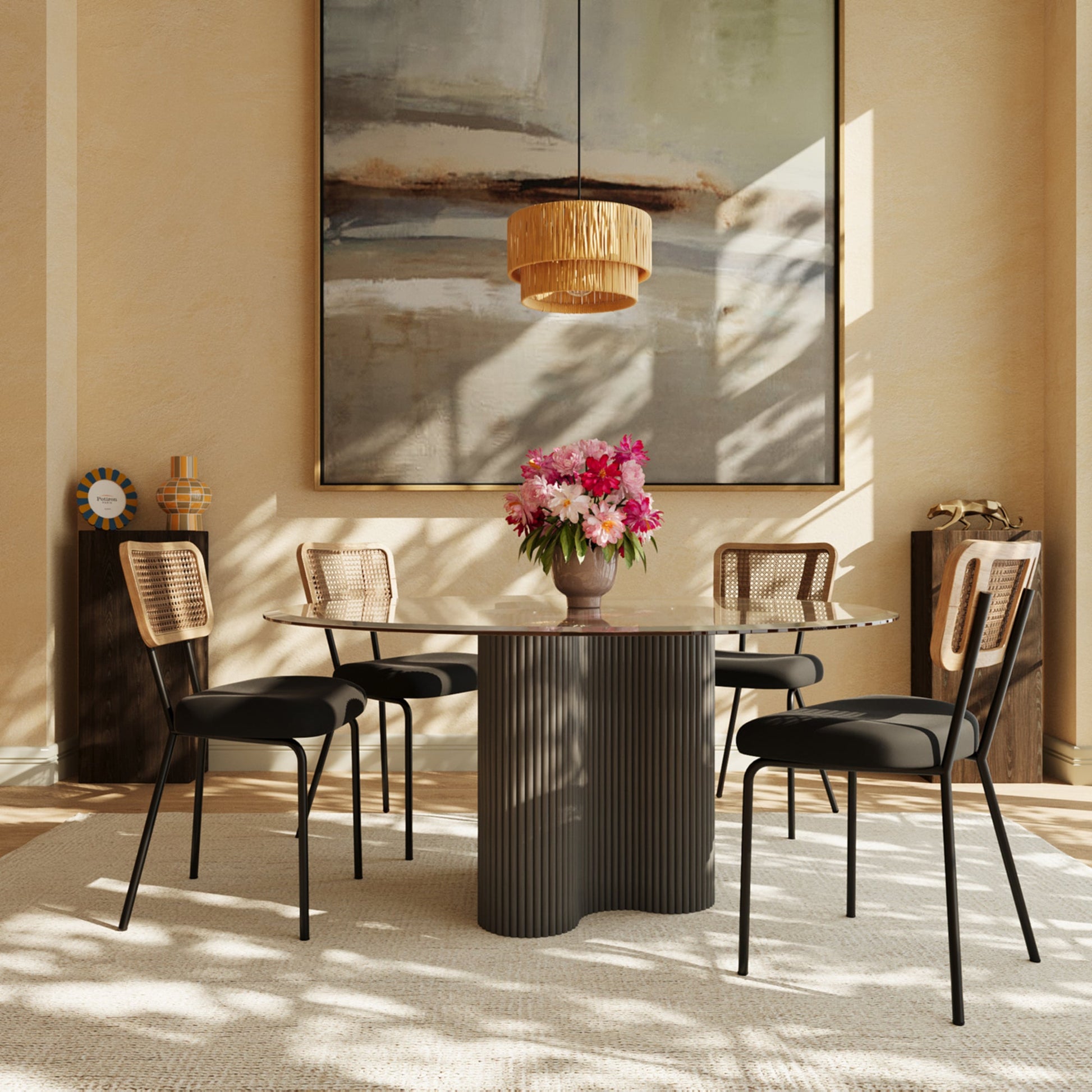 En détail | Les arguments forts des chaises de salle à manger dossier rotin, coussin velours noir Sofia