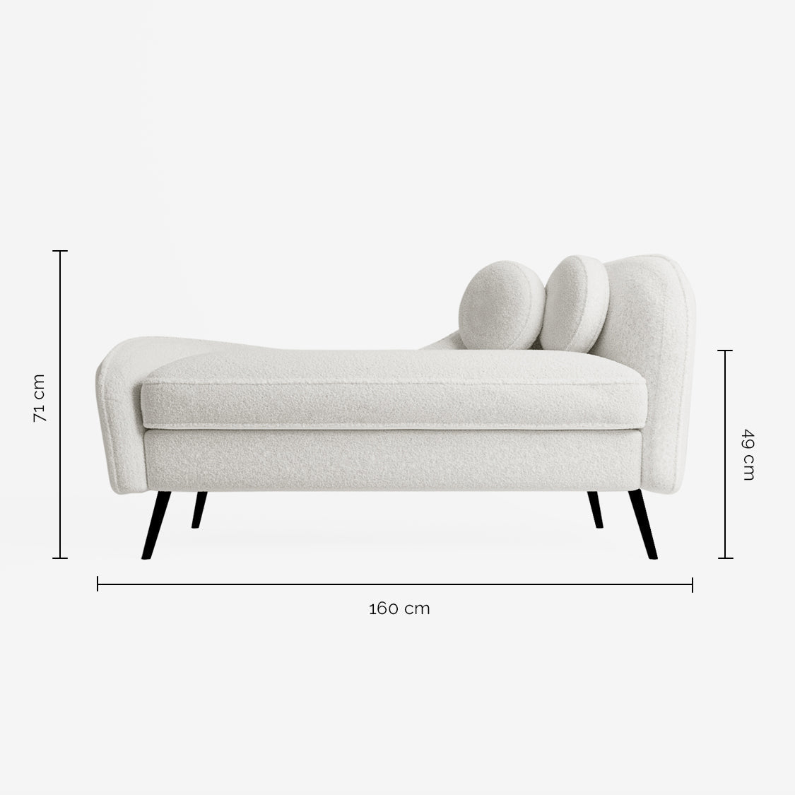 Une silhouette sculpturale qui fait rêver, un tissu effet laine bouclée qui donne envie de s'y lover, décidément, la méridienne design Mila a tout pour séduire. À mi-chemin entre lignes scandinaves et vintage, cette banquette méridienne en tissu laine bouclée écrue se positionne tout en haut de la liste des canapés tendance préférée des intérieurs contemporains.