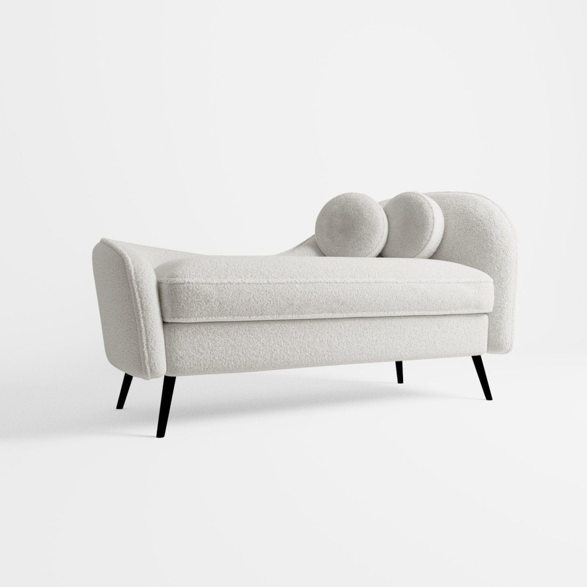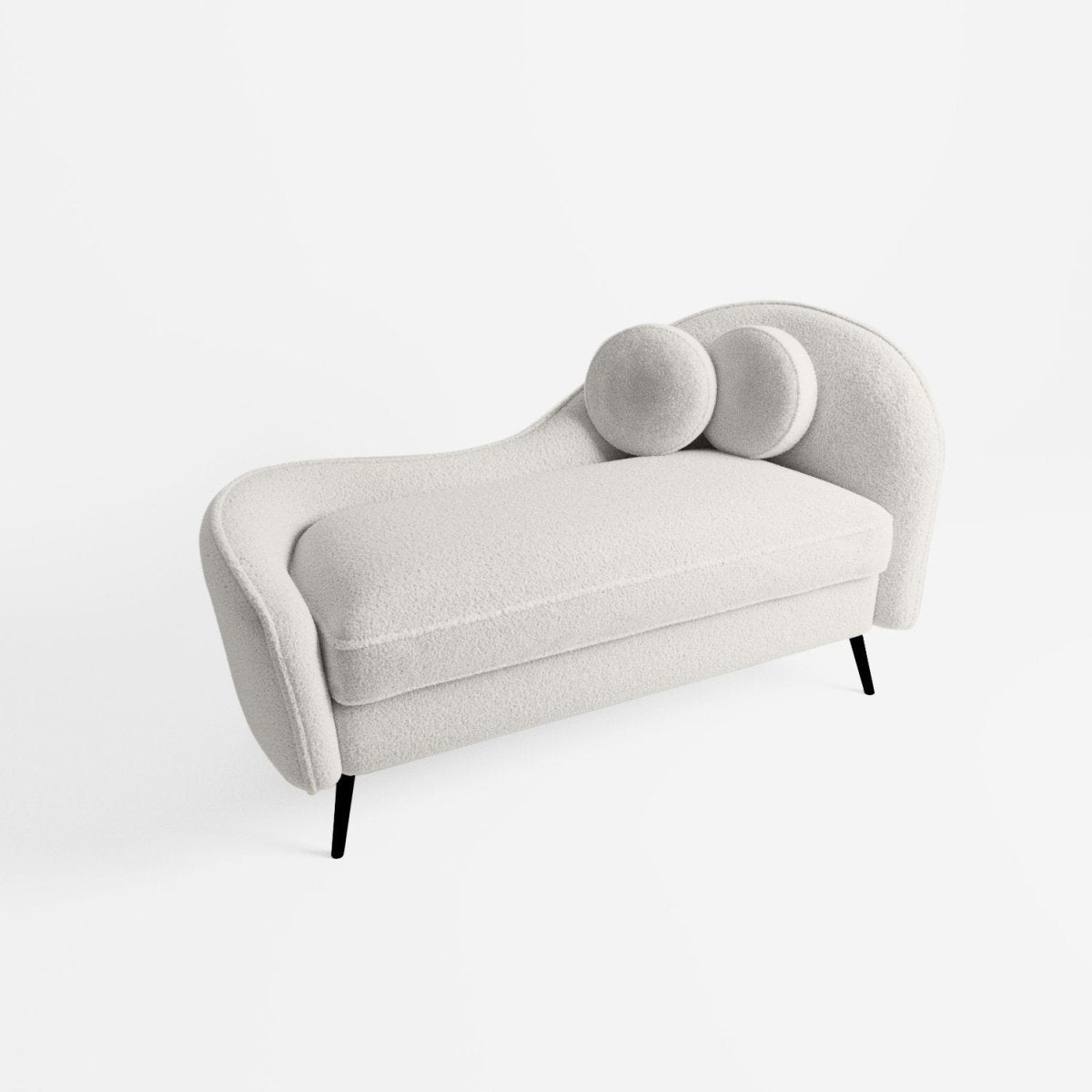 Méridienne design Mila, en tissu effet laine bouclée écrue et pieds en métal noir