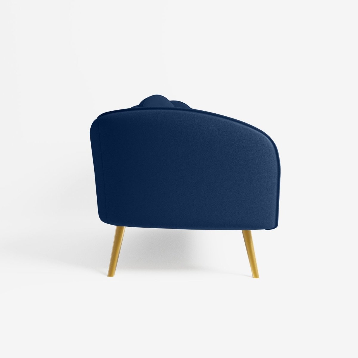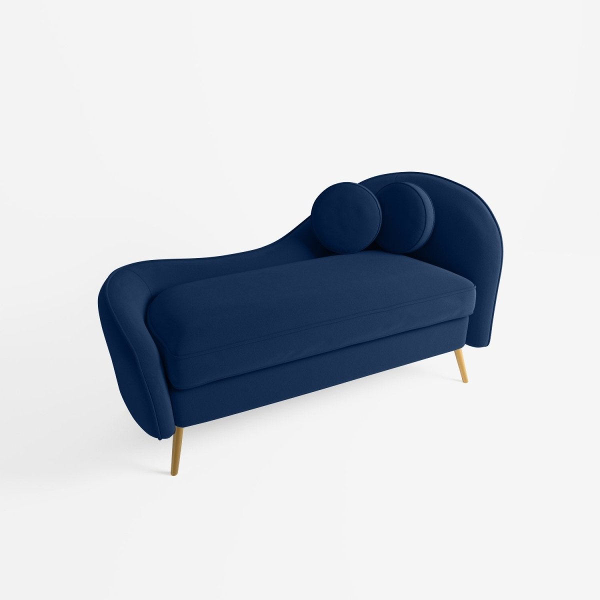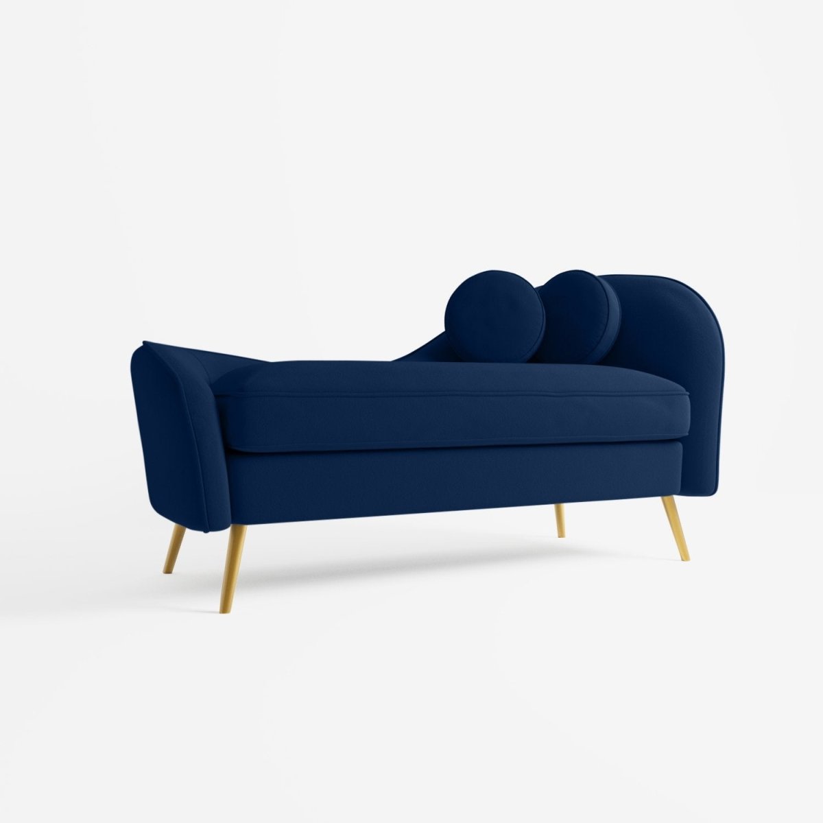 Méridienne design Mila en velours bleu nuit et pieds dorés
