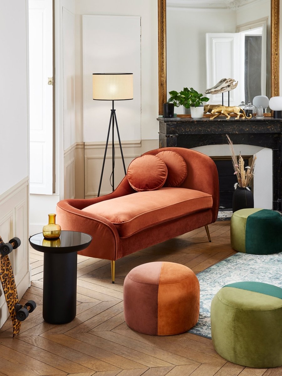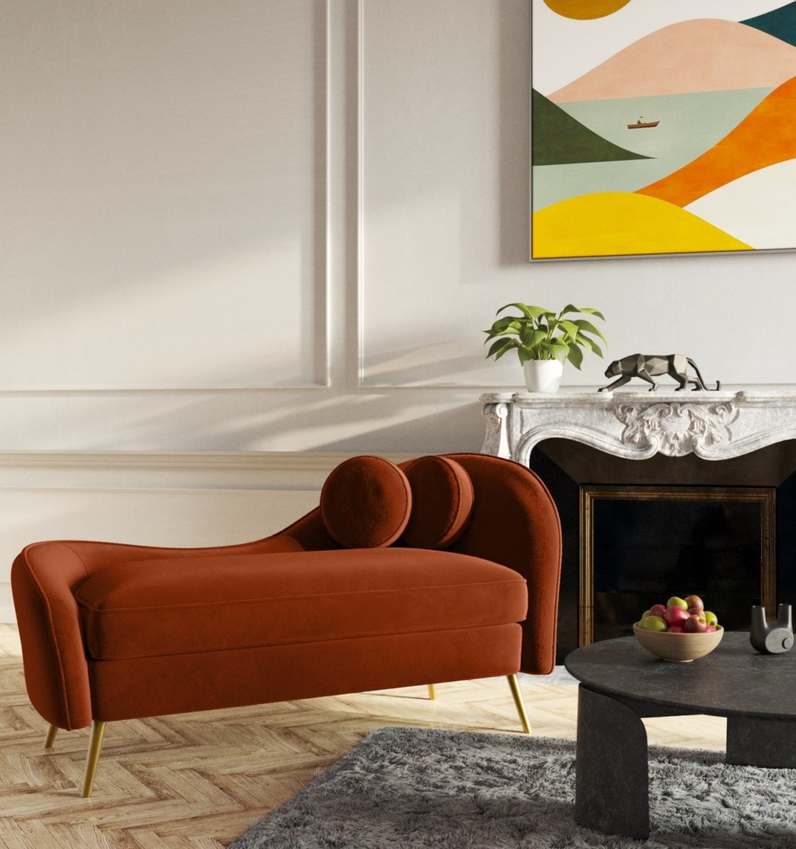 Sophistiqué et relaxant, le canapé méridienne en velours ocre