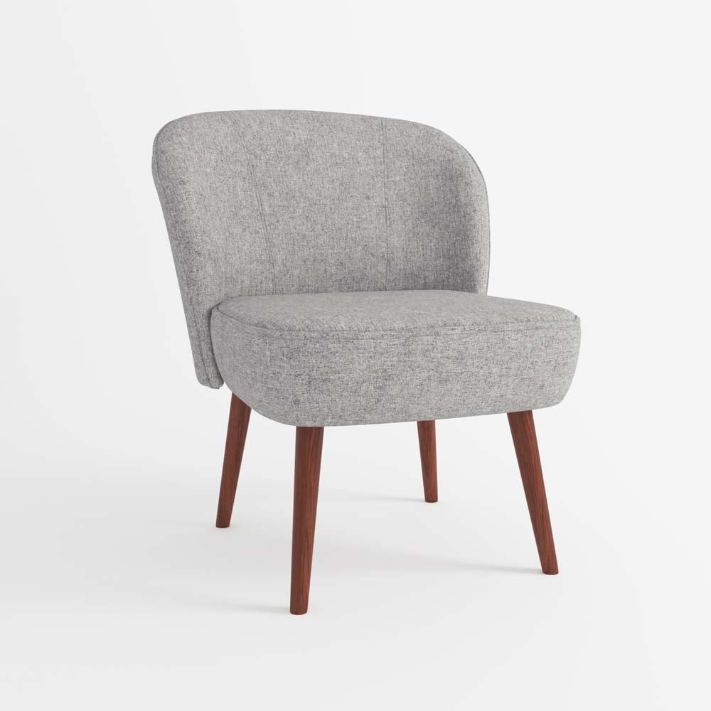 Jane, petit fauteuil cocktail de salon, en tissu gris, pieds en bois foncé